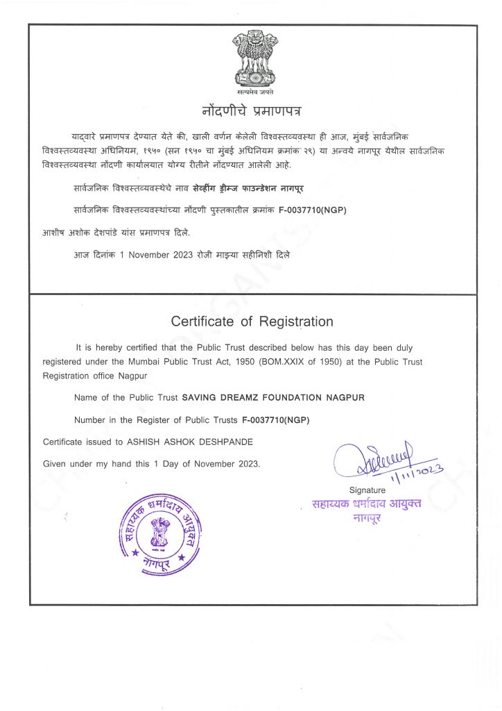 Saving Dreamz Foundation is a registered non-profit organization under the Mumbai Public Trust Act, 1950 (Registration No. F-0037710 (NGP)) working towards the holistic development of underprivileged children and communities in India. Established in 2021, the foundation focuses on key areas such as education, sports development, healthcare support, environmental awareness and youth engagement. Through its various initiatives, Saving Dreamz Foundation provides educational resources, school supplies, fee assistance and a study cum activity center for children from economically weaker sections. The organization also promotes sports like Rope Skipping and other fitness activities, enabling children to participate and achieve success at District, State and National Level Championships. The foundation actively organizes health camps, Blood Donation drives, TB awareness campaigns and Nutritional support programs, benefiting thousands of individuals. In addition, its environmental initiatives and waste management awareness sessions in schools and institutions encourage sustainable practices among communities. With impactful internship programs benefiting 500+ students from colleges across India, Saving Dreamz Foundation continues to inspire youth to contribute to social change. By combining Education, Sports, HealthCare and Environmental responsibility, Saving Dreamz Foundation is committed to empowering children, strengthening communities and building a brighter and sustainable future.